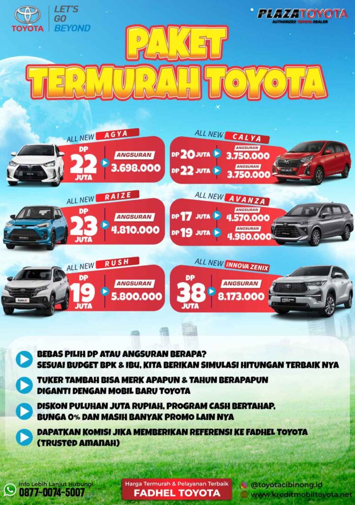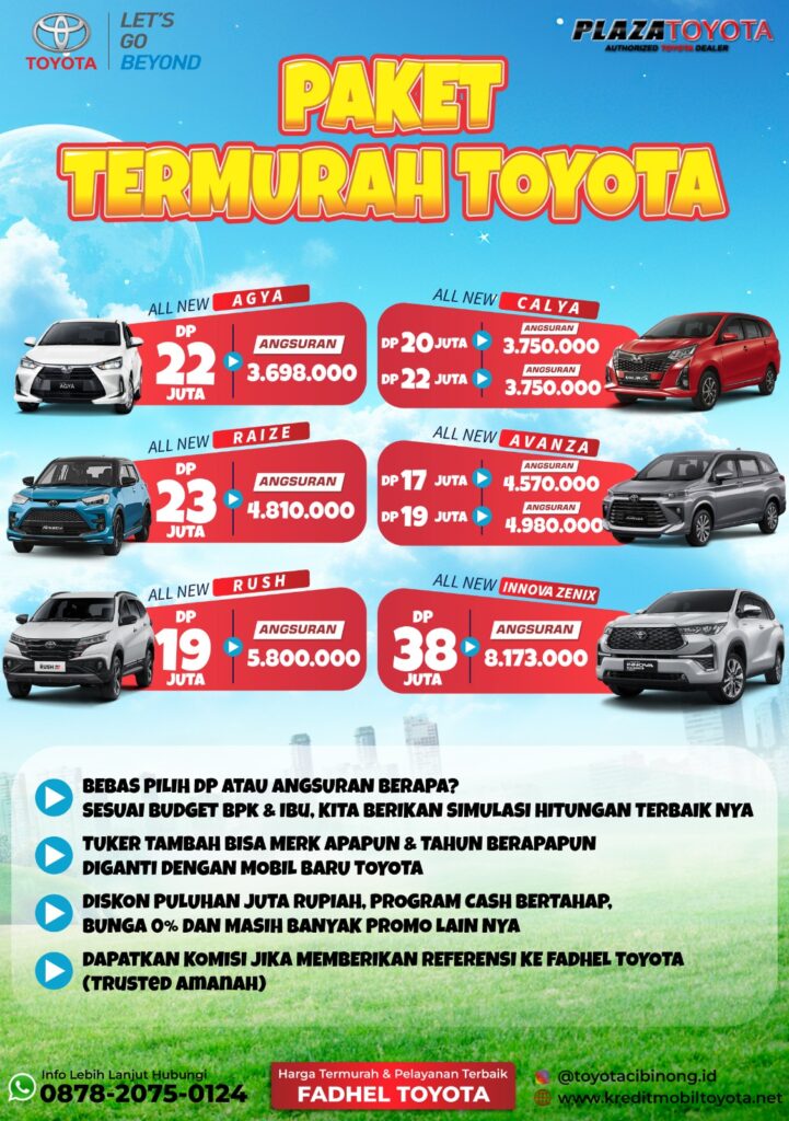 Melayani Cash & Kredit All-Type Mobil Baru Toyota Jabodetabek. Diskon Paling Besar, Angsuran Super Ringan, Banyak Hadiah Menarik, Ready Stock, Free Oli & Jasa Service Selama 4 Tahun.